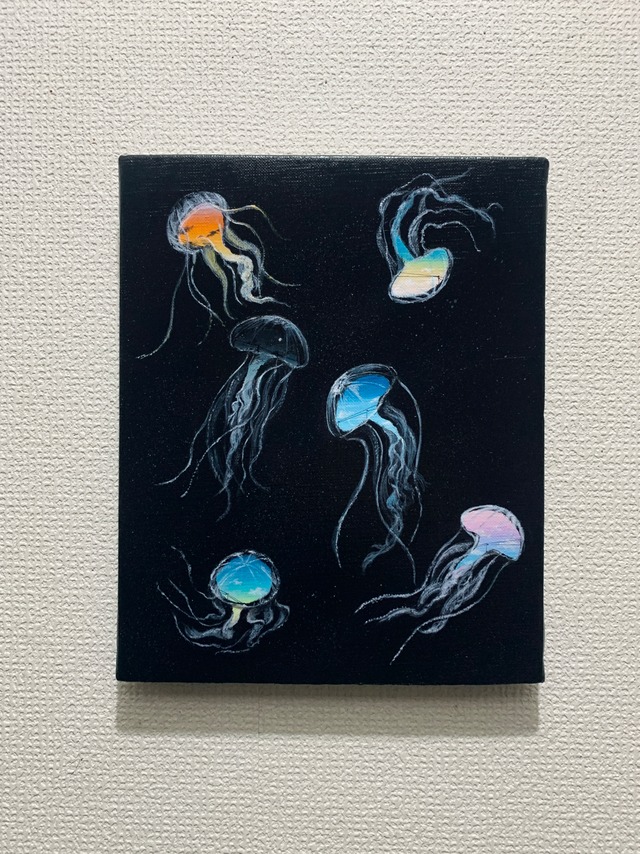 [サイズ]約27.5㎝(縦)×約21.5㎝(横)×約2㎝(厚さ) [画材]キャンバス、アクリル絵具、水溶性ニス油性ペン、ヒートン(接合金具)、紐 *作品の裏面にヒートン(接合金具)と紐をつけており、 フック等に引っかけて飾ることができます。 *こちらの作品は1点のみとなっております。 *写真と現物の色は少し異なる場合がございます。 *筆の1部が混ざってしまう場合がございます。 直射日光を避けていただき、埃などの掃除をする場合は柔らかい素材のもで軽く拭き取ってください。